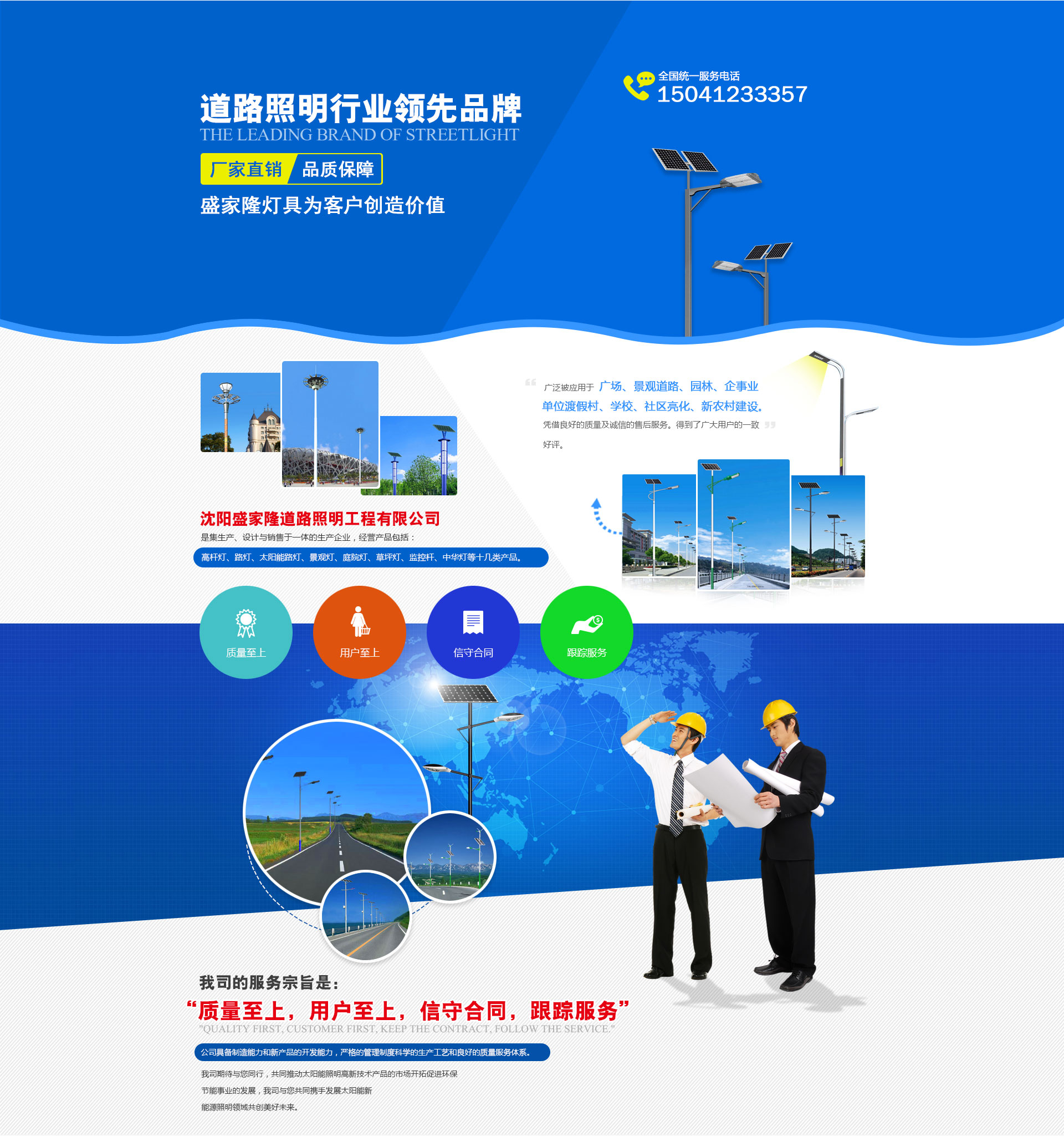 沈陽(yáng)盛家隆道路照明工程有限公司坐落于沈陽(yáng)市于洪區(qū)興盛村愛(ài)國(guó),生產(chǎn)各種室外,道路,廣場(chǎng),車站,碼頭,橋梁,庭院及室內(nèi)工礦照明燈具,品種有太陽(yáng)能路燈,道路燈,LED路燈,組合燈,景觀燈,庭院燈,草坪燈,彩色泛光燈,中高桿燈以及配套使用的各種路燈頭,鎮(zhèn)流器,觸發(fā)器開(kāi)關(guān)箱等系列產(chǎn)品。 本公司自成立以來(lái),已初具規(guī)模,現(xiàn)有高級(jí)技術(shù)人員5人,中級(jí)技術(shù)人員28人,研究設(shè)計(jì)人員14人,車間工人百余人,并備有大型斬彎?rùn)C(jī),1600t-900t壓鑄機(jī),20t行吊,高速縱剪機(jī),埋弧自動(dòng)焊,彩色噴塑線燈先進(jìn)設(shè)備,高科技創(chuàng)造高質(zhì)量,由我公司生產(chǎn)的各種類型的照明燈具,不僅質(zhì)量可靠而且線條流暢,外形美觀,深受廣大客戶的喜愛(ài),長(zhǎng)期以來(lái),我公司一直注重產(chǎn)品質(zhì)量,堅(jiān)持“質(zhì)量是企業(yè)的生命”的宗旨。由于質(zhì)量可靠,價(jià)格合理,服務(wù)周到,從而贏得了廣泛的市場(chǎng)聲譽(yù)。企業(yè)先后被評(píng)為“質(zhì)量信得過(guò)企業(yè)”“重誠(chéng)信守信用企業(yè)”,“AAA級(jí)資信企業(yè)”,并通過(guò)ISO9001:2000國(guó)際質(zhì)量體系認(rèn)證,ISO14001:2004環(huán)境管理體系認(rèn)證,CCC,CQC國(guó)家強(qiáng)制性產(chǎn)品認(rèn)證和持有道路照明二級(jí)安裝,安全生產(chǎn)資質(zhì)。